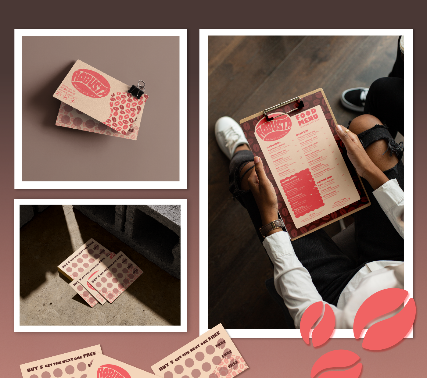 This project brief outlined a retail food branding assignment where we had to create a complete brand identity for a food retail business—either a new concept or a rebrand. It helped me to gain an insight through the full design process, including research, ideation, concept development, and presentation. I had to research competitors and audiences, create mood boards, develop a logo, business card, coffee card, style guide, pattern, menu, uniform, and advertising campaign, and present mockups to the class. All work had to be original and professionally prepared for both print (CMYK, 300dpi) and digital output. The project also required critical reflection, a self-evaluation, and a rationale explaining your creative thinking, technical process, and design decisions.